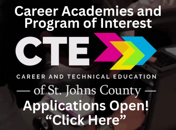 Students in 8th and 9th grade may apply for enrollment in a Program of Interest for any of the St. Johns County School District high schools. Programs of Interest include high school Career Academies, IB and AICE acceleration programs, JROTC, Early College Program, Early Career Program, and the St. Johns County Center for the Arts (SJCCA).