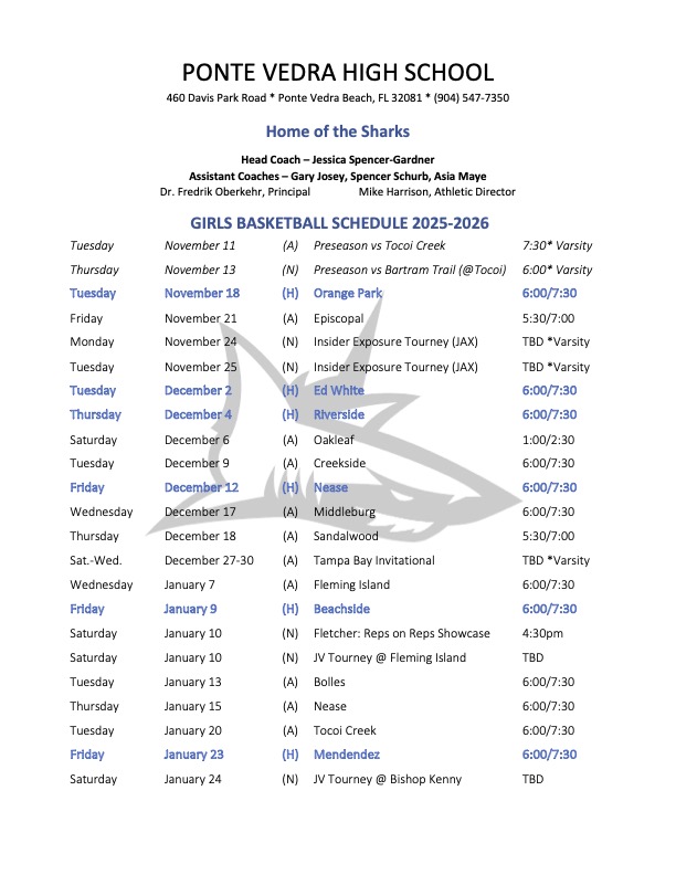 Coach Spencer Schurb comes to Ponte Vedra High School after spending the past five years coaching throughout Missouri and Mississippi. Most recently at Ursaline Academy High School, he helped guide his teams to three consecutive 20+ win seasons and three district titles. He also coached three District Player of the Year winners, along with multiple All-State, All-District, and All-Conference athletes. Outside of high school basketball, Coach Spencer has coached with Unstoppable Basketball Academy, a St. Louis-based AAU program. Coach Spencer is relocating to Jacksonville with his wife, who will be entering her orthodontic residency at JU. He holds a Bachelor’s Degree in Kinesiology from the University of Southern Mississippi, and he is also the current Assistant Athletic Director at Ponte Vedra.