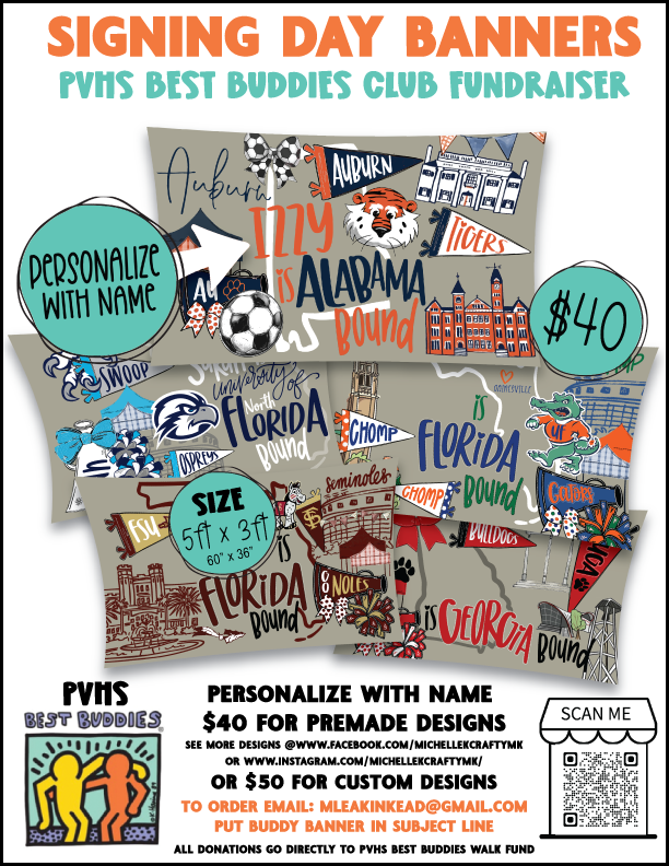 Senior dues are $120.00 to cover the costs of graduation at the UNF arena, the senior picnic, and other activities as designated by the senior class officers. We have provided a link to SchoolPay for your convenience. We would appreciate receiving senior class dues by October 3, 2025. Thank you.