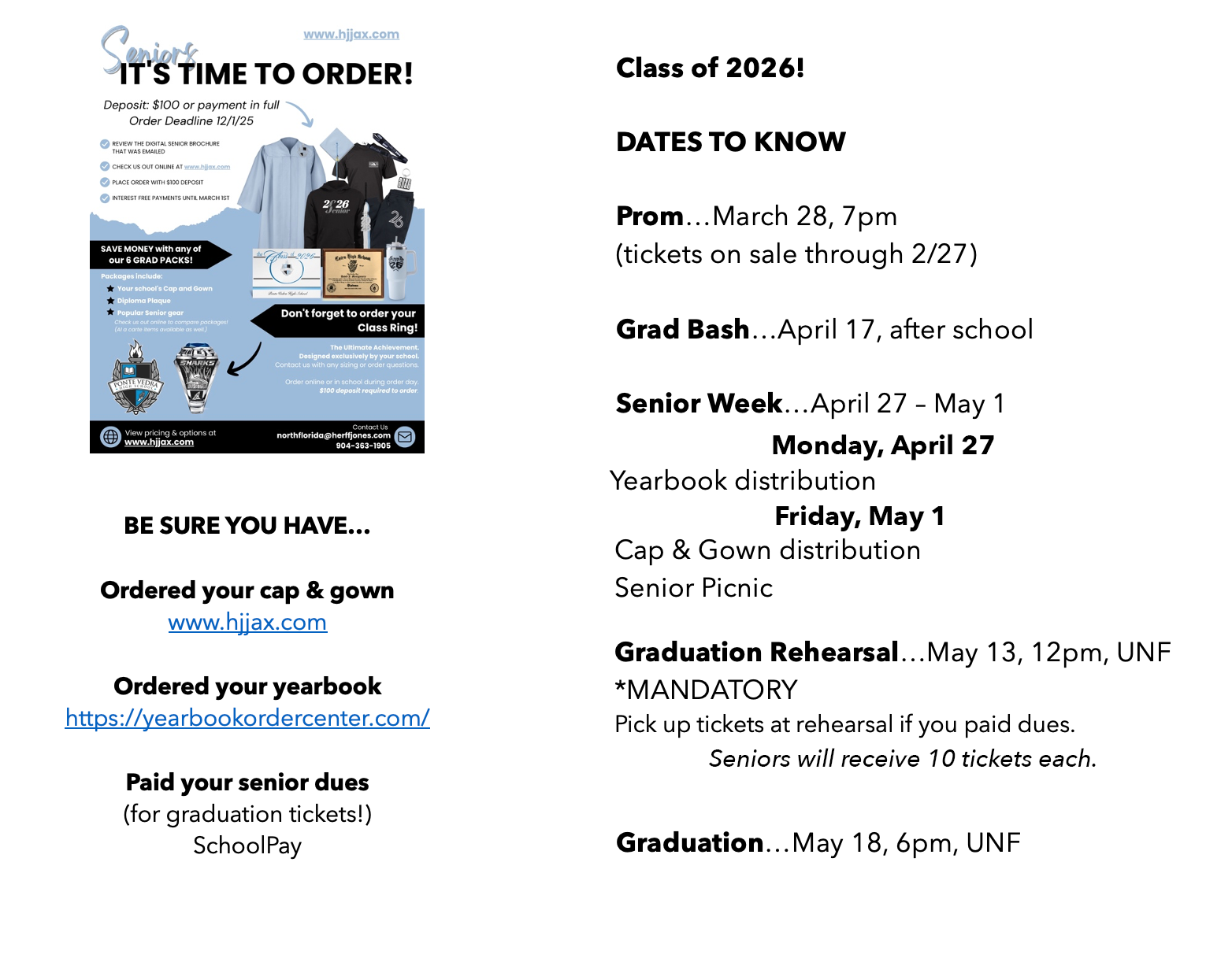 5/18 6:00 PM CLASS OF 2026 GRADUATION @ UNF